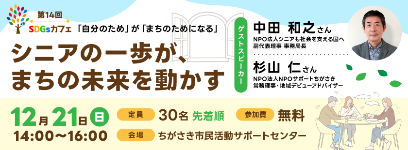 【参加者募集】12/21(日)第14回SDGsカフェ「シニアの一歩が、まちの未来を動かす」