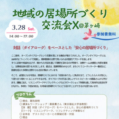 【参加募集】3/28(土) 地域の居場所づくり交流会Ⅹ「対話(ダイアローグ)をベースとした「安心の居場所づくり」」