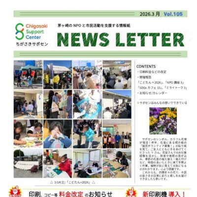 サポセンニューズレターVol.105発行! ~茅ヶ崎市のNPOと市民活動を応援する情報紙