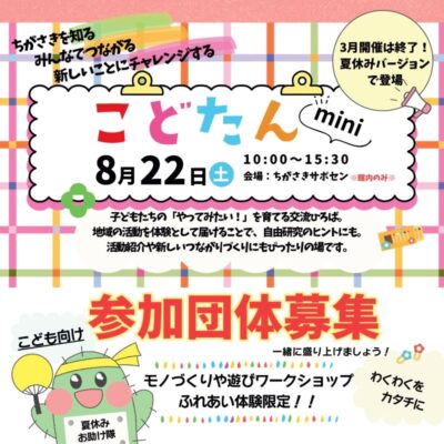 【参加団体募集】8/22(土)こどたんmini 2026 、夏に開催♪あなたの団体も参加しませんか?
