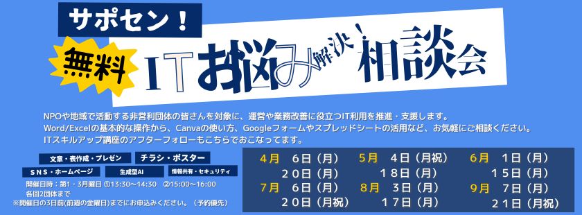【施設利用制限】サポセン主催事業開催のため、施設の利用制限をする場合があります