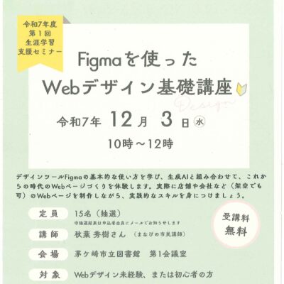 12/3(水)_令和7年度 第1回 生涯学習支援セミナー Figmaを使ったWebデザイン基礎講座 講演・講座・研修