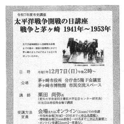 12/7(日)_太平洋戦争開戦の日講座 戦争と茅ヶ崎 1941年~1953年 講演・講座・研修