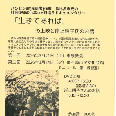 3/24(火)_第二回 「生きてあれば」の上映と岸上昭子氏のお話 上映・公演・展示