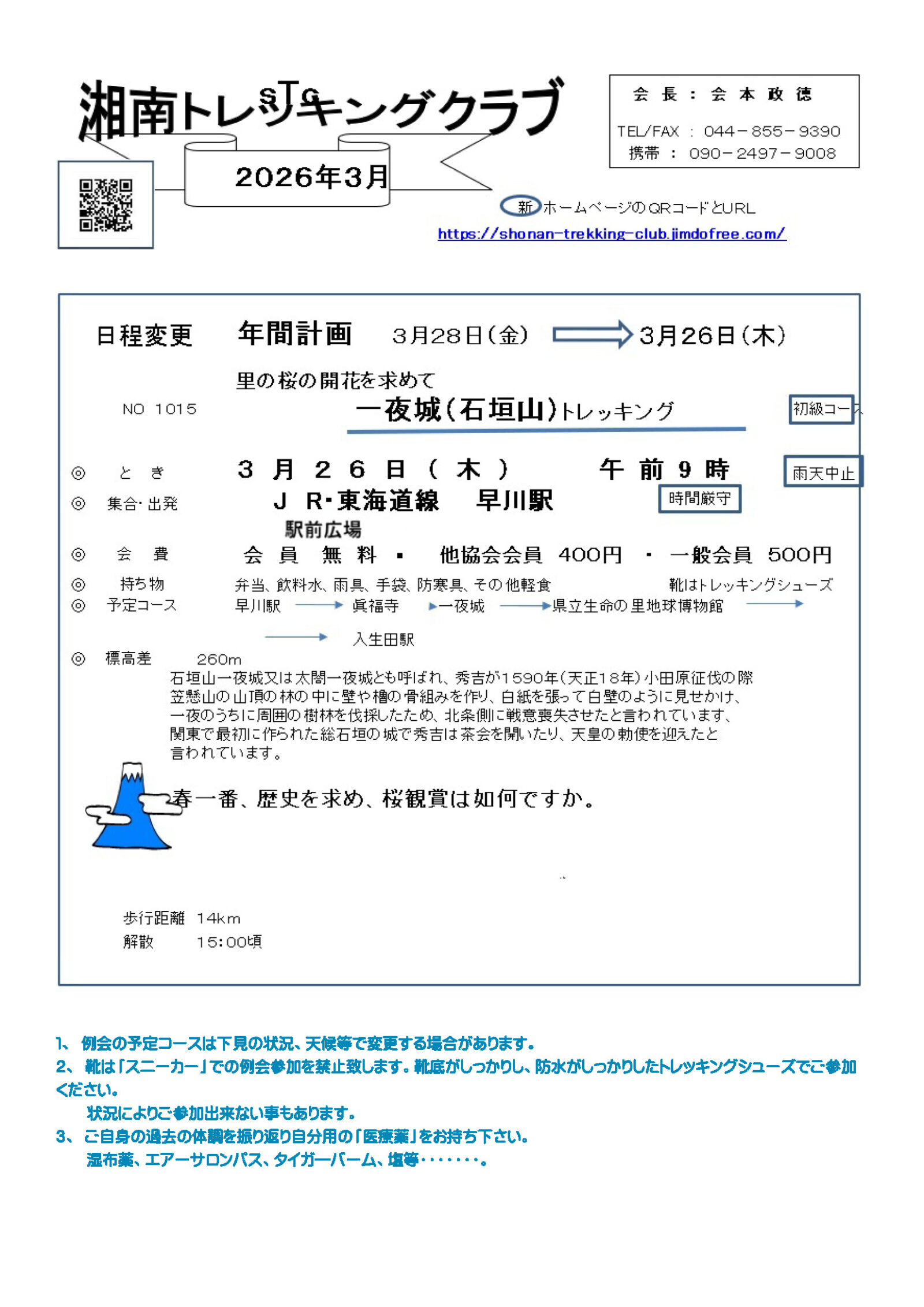 3/26(木)_湘南トレッキングクラブ 一夜城(石垣山)トレッキング イベント・体験