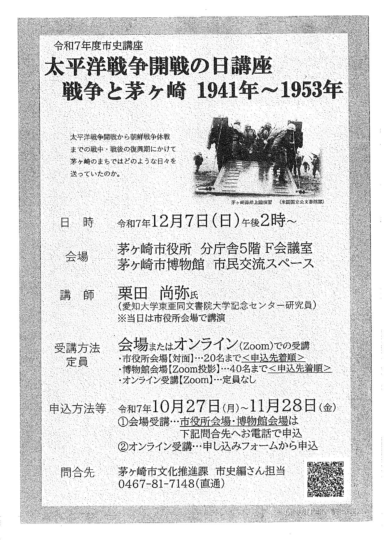 12/7(日)_太平洋戦争開戦の日講座 戦争と茅ヶ崎 1941年~1953年 講演・講座・研修