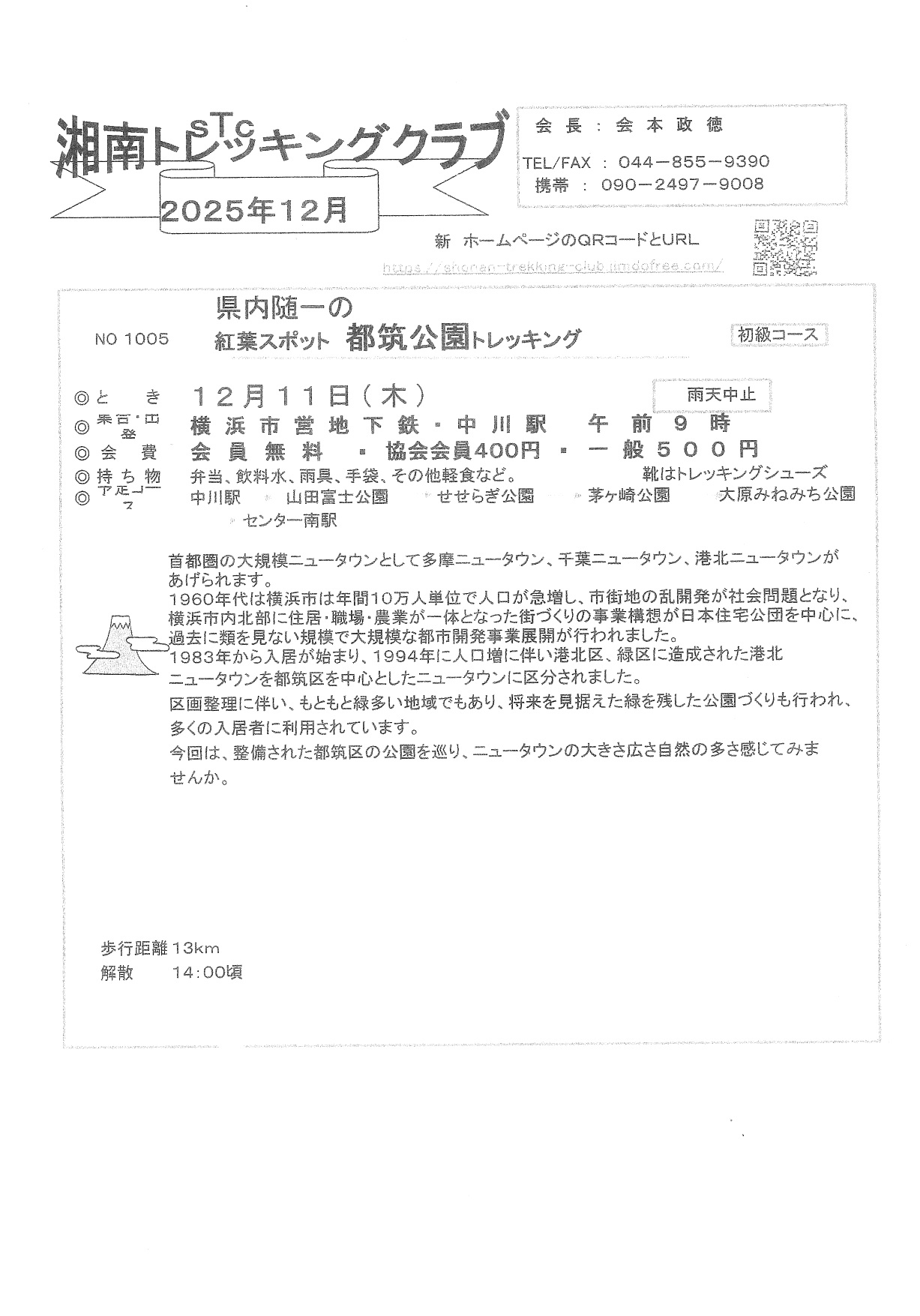 12/11㈭_湘南トレッキングクラブ 県内随一の紅葉スポット 都築公園トレッキング イベント・体験