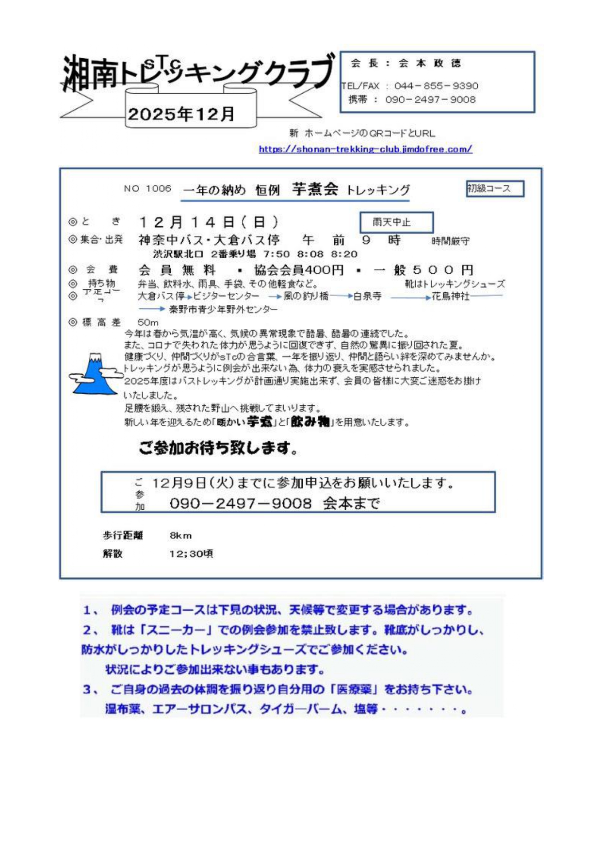 12/14㈰_湘南トレッキングクラブ 一年の納め 恒例 芋煮会 トレッキング イベント・体験