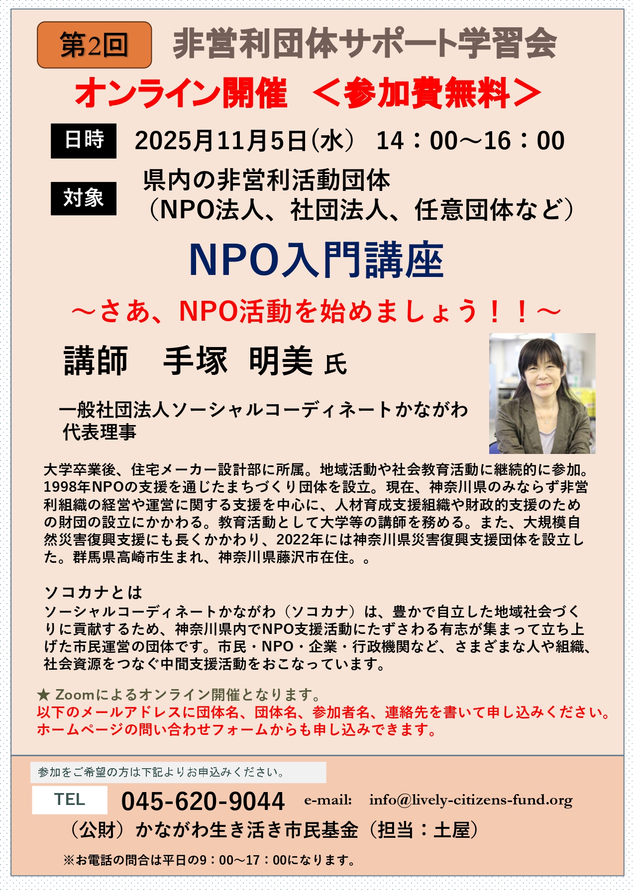 第2回 非営利団体サポート学習会「NPO入門講座 ~さあ、NPO活動をはじめましょう‼~」 講演・講座・研修