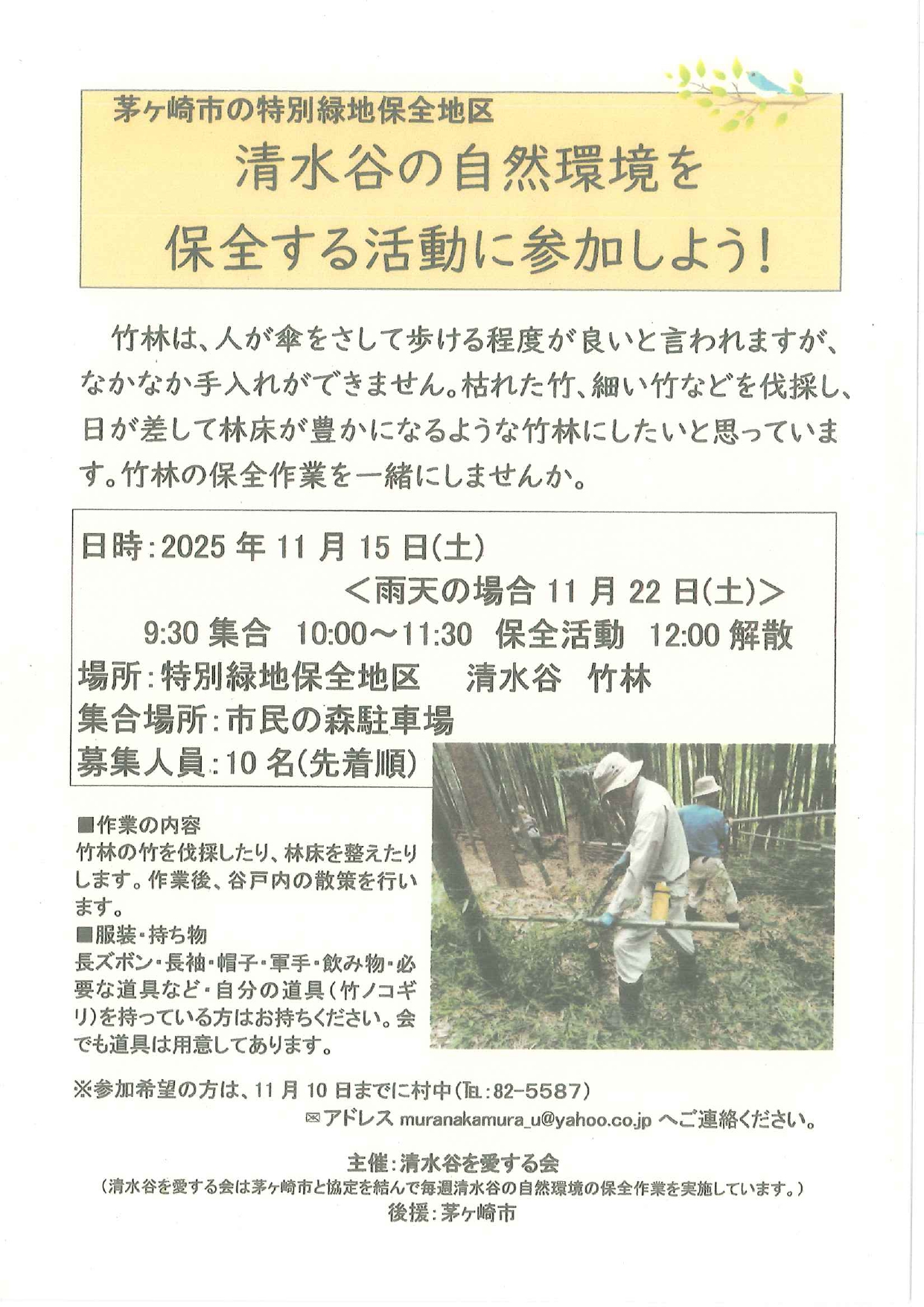 茅ヶ崎市の特別緑地保全地区 清水谷の自然環境を保全する活動に参加しよう! イベント・体験