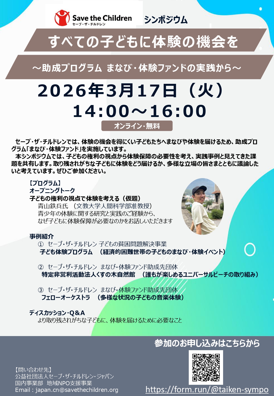 シンポジウム「すべての子どもに体験の機会を~助成プログラム まなび・体験ファンドの実践から~」 講演・講座・研修