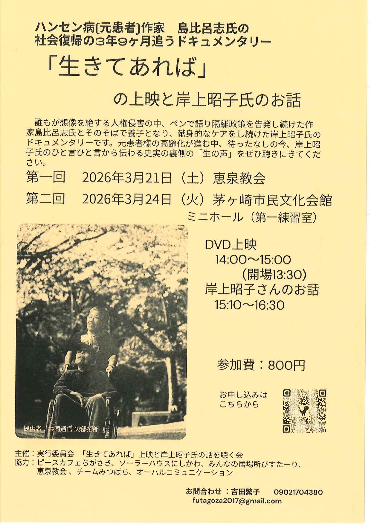 3-24(火)_第二回 「生きてあれば」の上映と岸上昭子氏のお話 上映・公演・展示