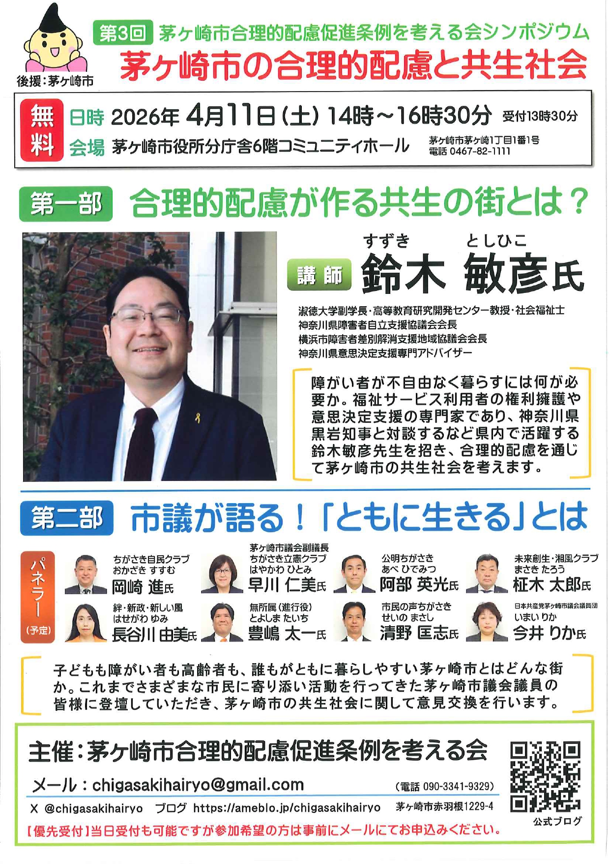 4/11(土)_第3回茅ヶ崎市合理的配慮促進条例を考えるシンポジウム 茅ヶ崎市の合理的配慮と共生社会 講演・講座・研修