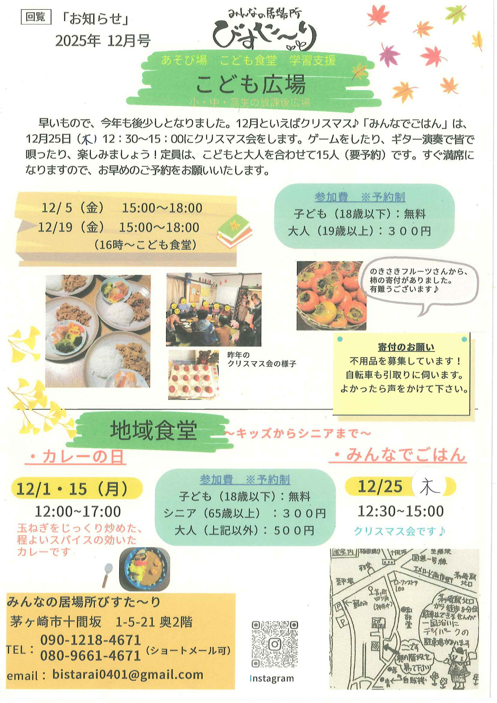12月号 ~みんなの居場所 びすたーり「こども広場・地域食道」のお知らせ イベント・体験