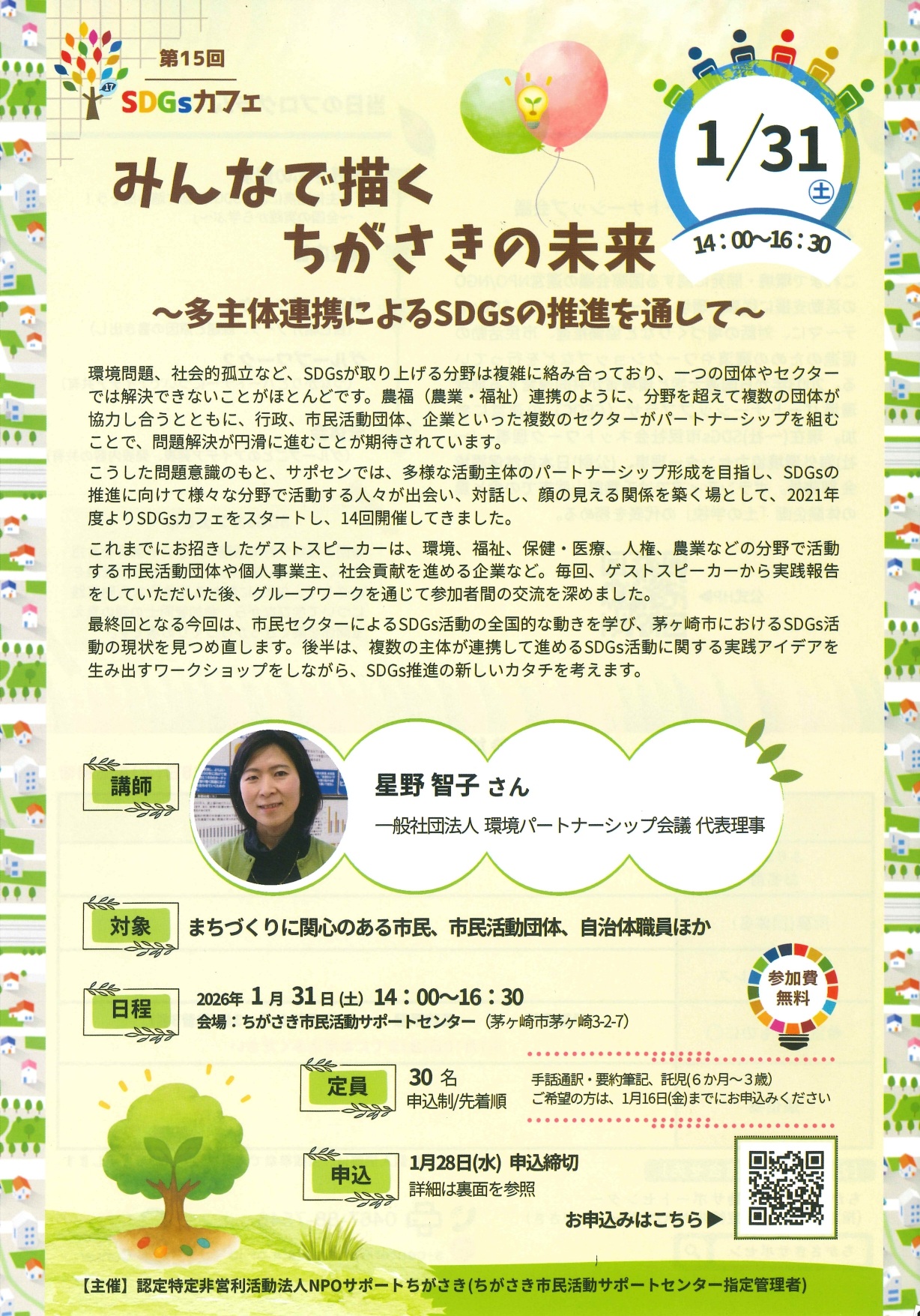1/31(土)_第15回SDGsカフェ「みんなで描く ちがさきの未来」~多主体連携によるSDGsの推進を通して~ 講演・講座・研修