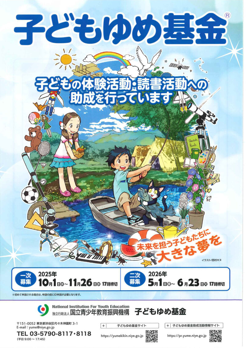 子どもゆめ基金 ~子どもの体験活動・読書活動への助成を行っています(一次募集〆切:11/26)~独立行政法人国立青少年教育振興機構