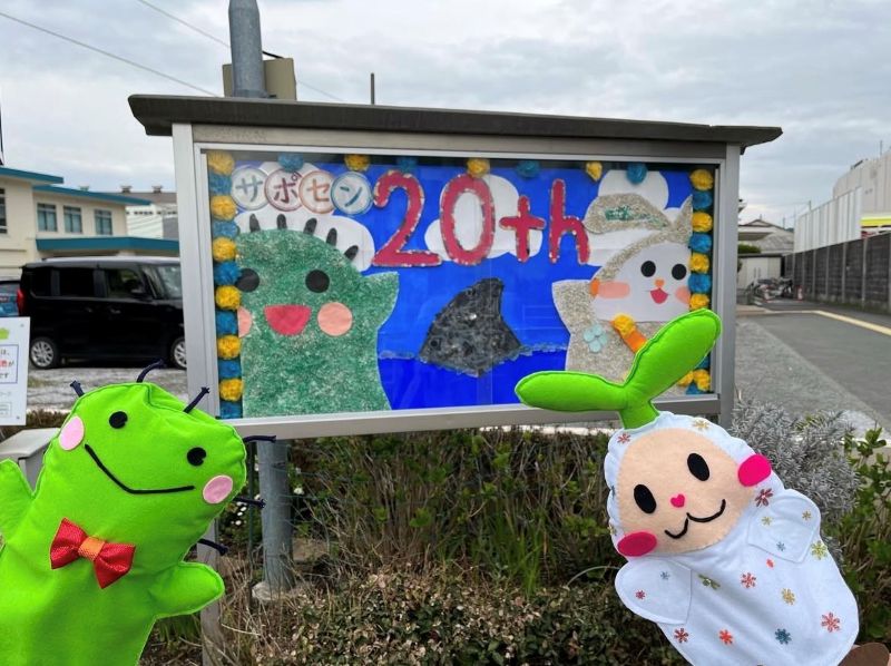 身近に環境問題を感じてほしいと、SDGsをテーマに “マイクロプラスチック” や “シュレッダーの紙” や “廃材” で、サポセン花壇にある掲示板に、20周年記念アートを制作しました!数カ月掲示し、街ゆく人たちの癒し効果もあったかも。
