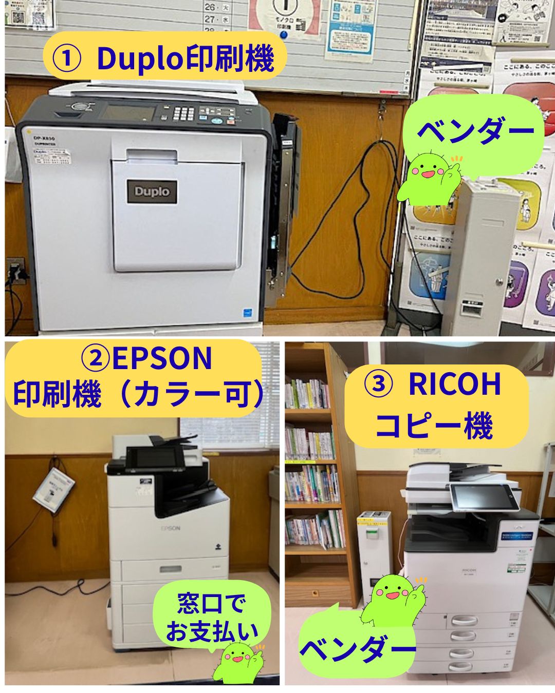 ① Duplo印刷機(モノクロ印刷、100枚以上の大量印刷向き)